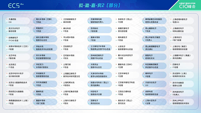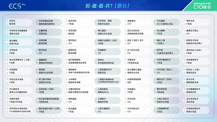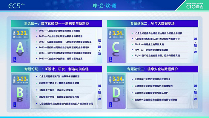 ECS 2023第四屆中國電子通信與半導(dǎo)體CIO峰會同期將舉行精品展臺、CIO面對面、硬核座談會、“ECS2023”歡迎晚宴等活動。