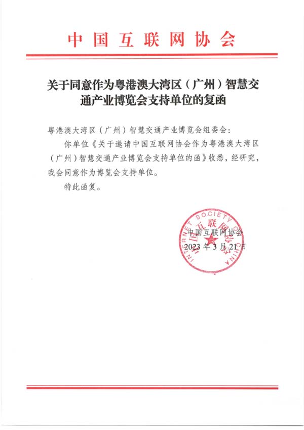 近日,中國互聯網協會回函將組織參加2023粵港澳大灣區(廣州)智慧交通產業博覽會。