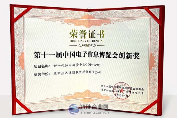 致遠互聯(lián)作為協(xié)同管理領(lǐng)域的開創(chuàng)者和引領(lǐng)者,受邀參加此次盛會。并憑借過去一年在企業(yè)數(shù)智化轉(zhuǎn)型理念、產(chǎn)品技術(shù)及服務(wù)模式等方面的諸多創(chuàng)新實踐成果,面向大型、集團型組織的新一代云原生協(xié)同運營平臺COP-A9C與金山辦公、奇安信、東方通等國內(nèi)知名企業(yè)級產(chǎn)品共同獲得“第十一屆中國電子信息博覽會創(chuàng)新獎”。