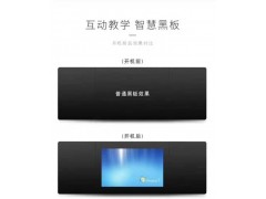 正面顯示為一個由三塊拼接而成的平面普通黑板,可以在上面用各種水筆書寫,又可以根據需要采用粉筆書寫。當打開電源時,中間一塊顯示出液晶的顯示畫面,可以進行觸摸互動,而關掉時,顯示畫面隱形,又顯示為一個普通黑板的表象,在上面進行書寫。