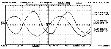 用示波器觀測電機電壓波形發現有些許畸變。 如圖 1-3所示