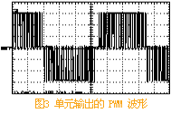 每個(gè)功率單元結(jié)構(gòu)上完全一致,可以互換,其電路結(jié)構(gòu)見(jiàn)圖2,為基本的交-直-交單相逆變電路,整流側(cè)為二極管三相全橋,通過(guò)對(duì)IGBT逆變橋進(jìn)行正弦PWM控制,可得到如圖3所示的波形