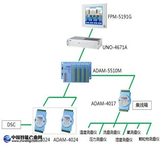 ADAM-5510M實(shí)現(xiàn)煙氣預(yù)處理、煙氣濃度換算并計(jì)算出各煙氣污染物的總量。