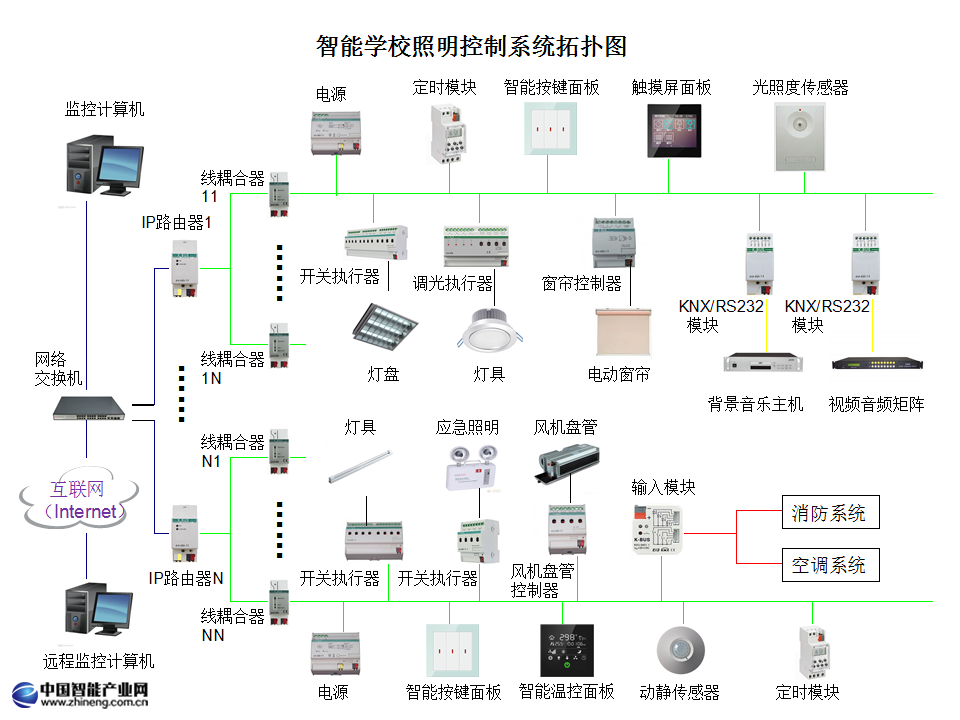 ●較普通總線控制系統更具優越性:系統結構更靈活,布線更少,傳輸速度更快,通訊更安全,充分滿足智能學校照明控制的智能化自動化需要。