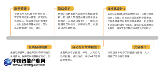 電源是很多安防行業系統建設中容易忽視的環節。如果有人把CPU比作人的大腦,那么電源就是一個人的心臟!任何安防設備,離開它均不能工作。安防電源的安全、可靠是保證整個安防系統正常運行的重要條件。大華股份創新性地提出了金融智能供電系統,讓電源加上“聯網”和“雙備”翅膀,加倍保障銀行技防系統的健康運行!