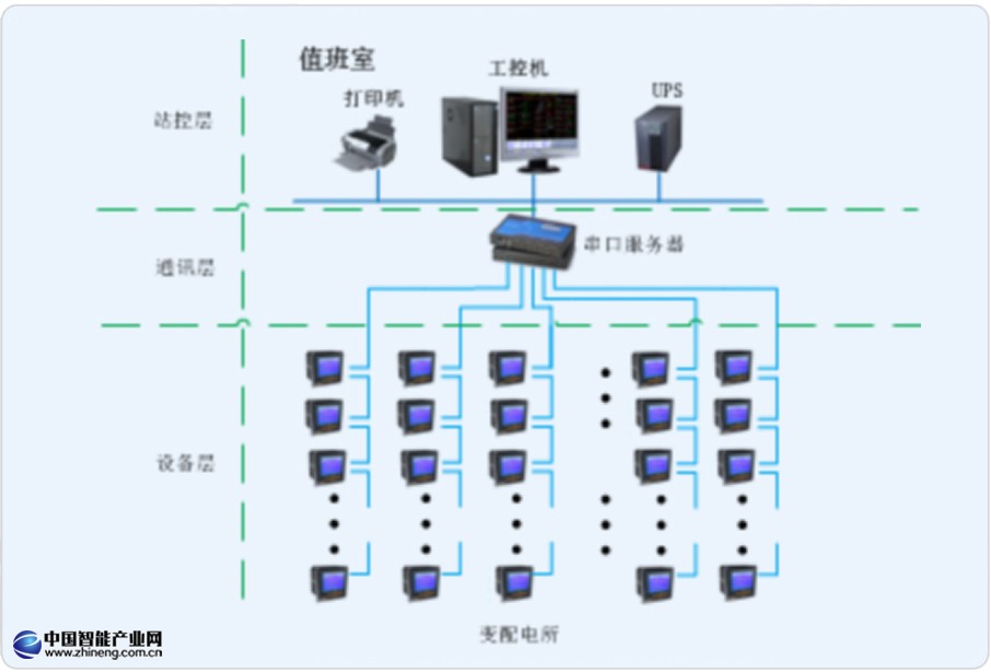 本項(xiàng)目設(shè)計(jì)為變配電所部分電力監(jiān)控系統(tǒng),變配電所位于地下一層,其中有兩路高壓進(jìn)線,配有綜合保護(hù)裝置,低壓部分,進(jìn)線柜、饋線柜配有儀表,本電力監(jiān)控系統(tǒng)監(jiān)控范圍為低壓部分裝置。通過(guò)組建系統(tǒng)網(wǎng)絡(luò),電力儀表通過(guò)現(xiàn)場(chǎng)總線直接接入變電所內(nèi)采集設(shè)備,并將數(shù)據(jù)上傳至Acrel-2000電力監(jiān)控系統(tǒng),實(shí)時(shí)監(jiān)測(cè)變電所內(nèi)各個(gè)回路的電流、電壓、功率、開(kāi)關(guān)狀態(tài)等電參量,由此達(dá)到變電所少人值守或無(wú)人值守的智能化管理。