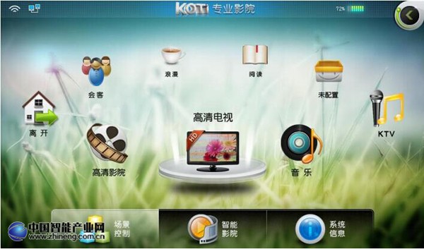 KOTI 專業(yè)影音控制系統(tǒng)是我公司研發(fā)設(shè)計(jì)的一套面向家庭用戶對(duì)眾多影音設(shè)備、燈光以及窗簾等設(shè)備實(shí)現(xiàn)智能集中化控制的系統(tǒng)。它主要由“專業(yè)影院系統(tǒng)主機(jī)”和“專業(yè)影院系統(tǒng)控制器”組成。該系統(tǒng)允許連接 8 個(gè)紅外設(shè)備和 6 個(gè) RS-232 設(shè)備,實(shí)現(xiàn)智能化集中影音控制;同時(shí)實(shí)現(xiàn)對(duì) 50 路燈光、窗簾、插座、空調(diào)等設(shè)備的智能控制;可自定義場景控制,實(shí)現(xiàn)一鍵式智能控制,充分滿足家庭視聽室的需求。